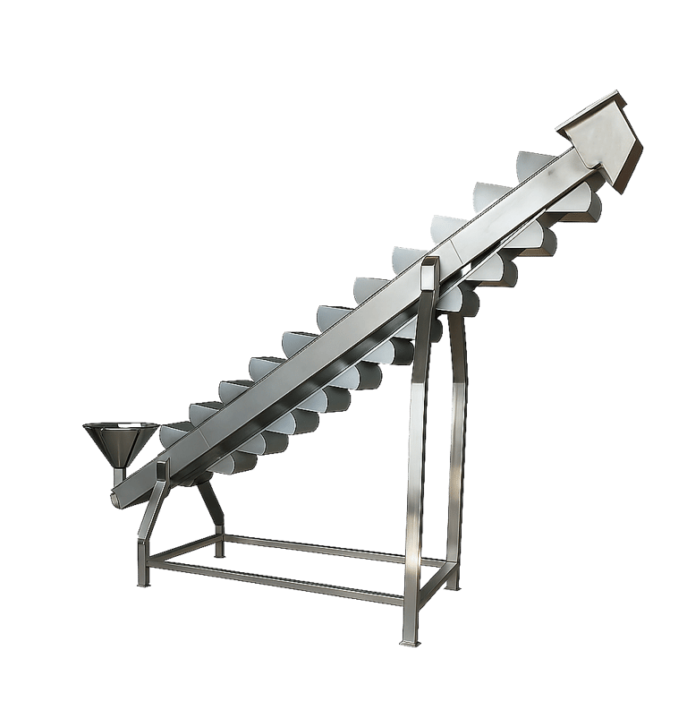 Bucket Conveyor adalah sistem konveyor yang dirancang khusus untuk mengangkut material secara vertikal maupun miring menggunakan rangkaian bucket (ember) yang terpasang pada sabuk atau rantai. Alat ini sangat ideal untuk memindahkan material curah (bulk material) seperti biji-bijian, produk makanan, bahan kimia, maupun produk industri lainnya.